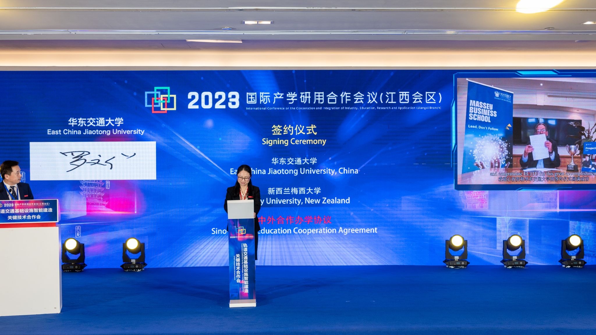 羅文俊與新西蘭梅西大學(xué)線上簽署華東交通大學(xué)與新西蘭梅西大學(xué)中外合作辦學(xué)協(xié)議。