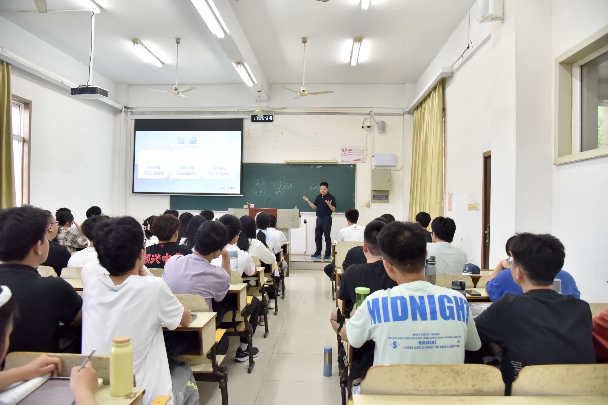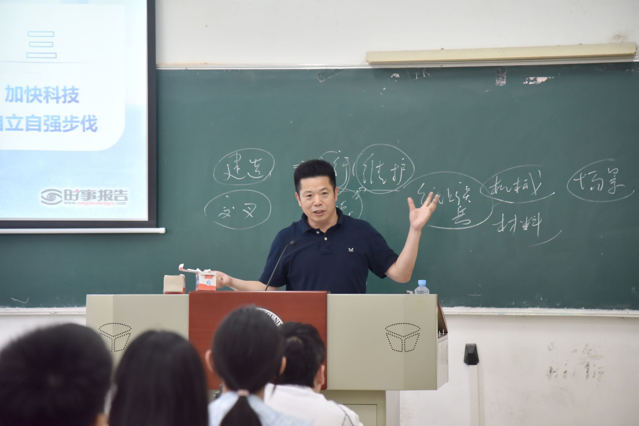課堂上,徐長(zhǎng)節(jié)從新時(shí)代的特點(diǎn)開講,用古代、近代到現(xiàn)代科技進(jìn)步的具體事例分析了科技創(chuàng)新的重要性。他指出,科學(xué)技術(shù)的進(jìn)步給人類的生產(chǎn)方式和生活方式帶來(lái)了巨大的變革,并將持續(xù)改變?nèi)祟惿畹姆椒矫婷妫@使得我們必須要跟上現(xiàn)代科學(xué)技術(shù)發(fā)展的步伐,否則就會(huì)被時(shí)代淘汰。同時(shí),他也強(qiáng)調(diào),雖然科學(xué)技術(shù)發(fā)展迅速,但基礎(chǔ)學(xué)科仍然是科技自立自強(qiáng)的基石。新時(shí)代科技自立自強(qiáng)必須加強(qiáng)基礎(chǔ)研究,加快推進(jìn)學(xué)科交叉融合,以創(chuàng)新驅(qū)動(dòng)發(fā)展。
