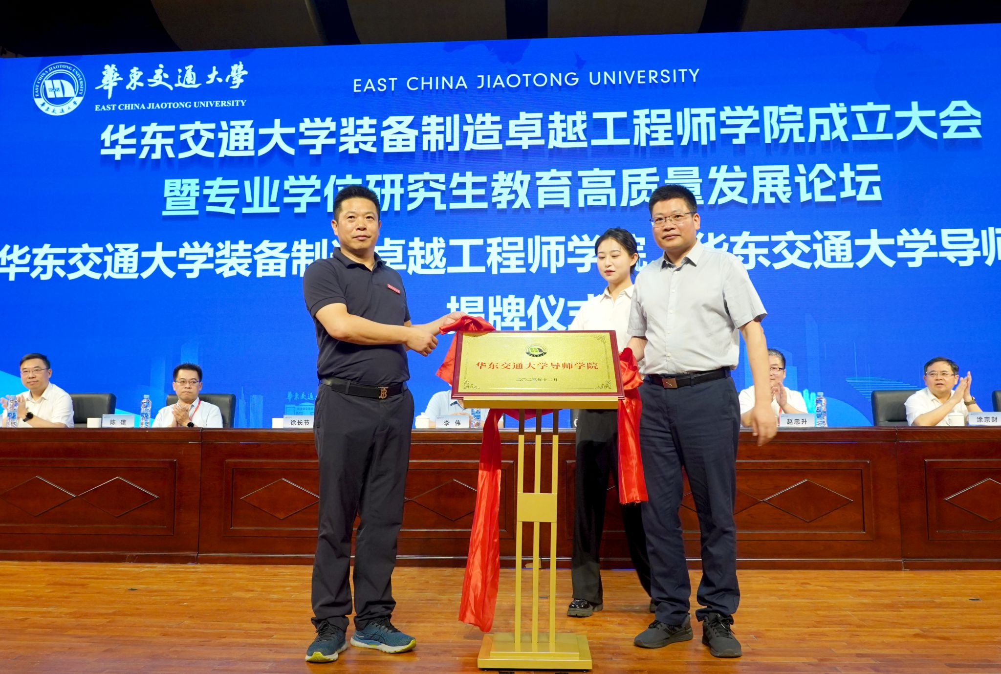 省教育廳二級巡視員李偉和校黨委書記柳和生共同為華東交通大學裝備制造卓越工程師學院揭牌。