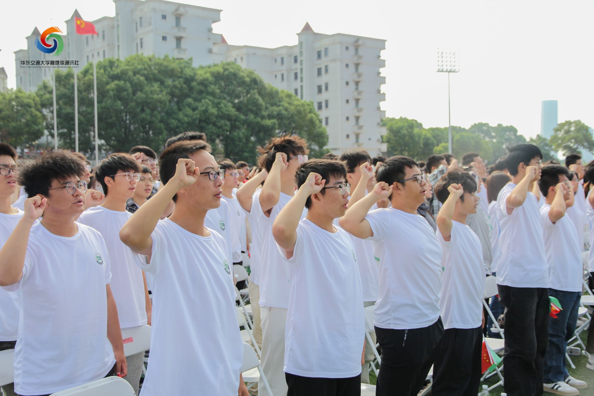 “謹(jǐn)記‘日新其德,止于至善’的校訓(xùn),秉承‘團(tuán)結(jié)、求實(shí)、創(chuàng)新、奮進(jìn)’校風(fēng)。爭(zhēng)當(dāng)‘鐵心鑄忠誠(chéng)、鐵血報(bào)家國(guó)、鐵肩擔(dān)使命、鐵手創(chuàng)大業(yè)’的新時(shí)代鐵人鐵軍!”——在典禮的高潮部分,全體新生集體宣誓,向祖國(guó)致以青春的禮贊,向華交許下青春的誓言。