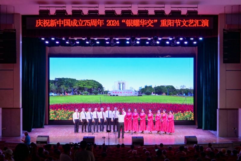 “莫道桑榆晚,為霞尚滿天。”在重陽節佳節之際,10月11日下午,我校隆重舉行慶祝新中國成立七十五周年暨2024“銀耀華交”重陽節文藝匯演。校黨委書記柳和生出席活動并發表致辭,代表學校黨委、行政向全體離退休老同志致以節日問候和誠摯祝福,祝大家福壽雙全、頤養天年、歲歲平安、年年順遂。