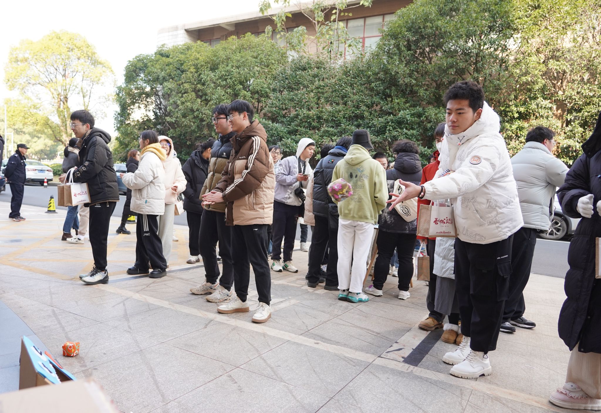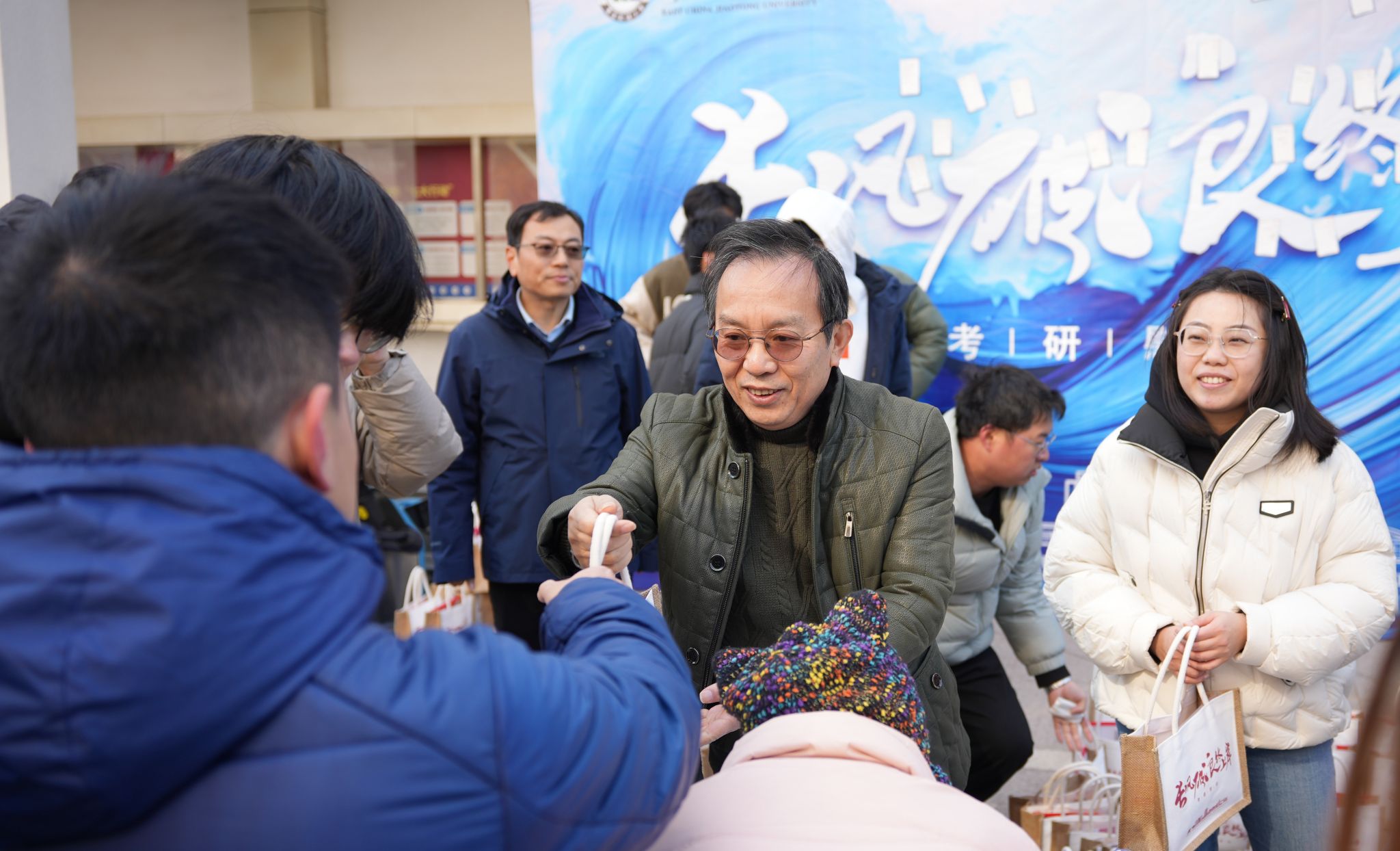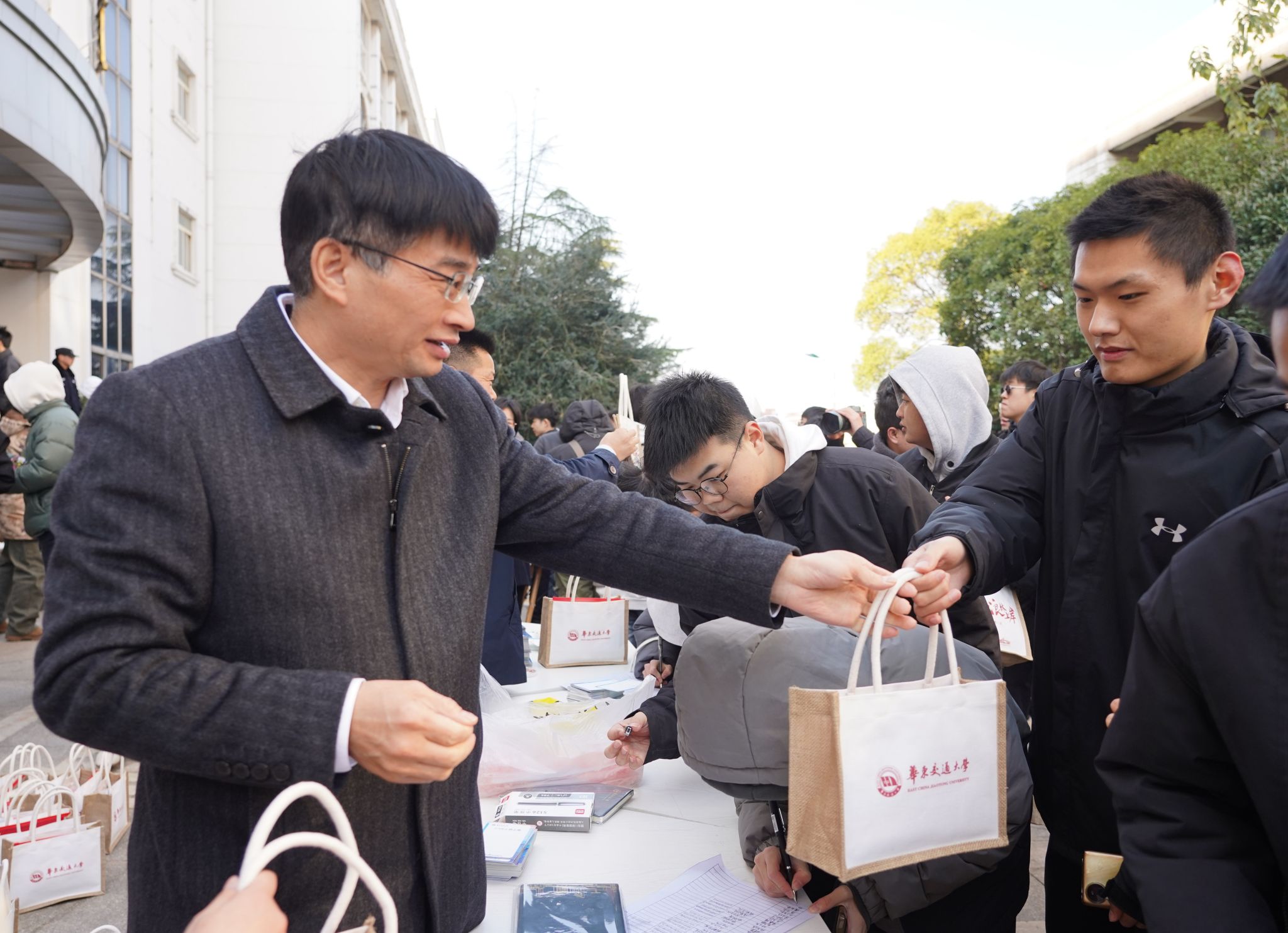 校黨委副書記、校長徐長節為考研學子送考研加油包。