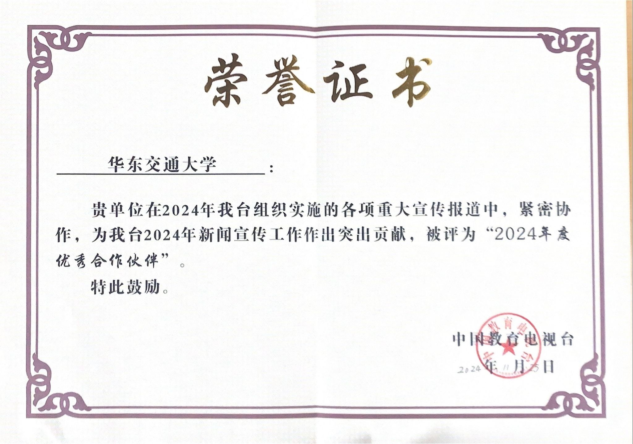 近日,中國(guó)教育電視臺(tái)表彰了2024年度杰出合作伙伴、最佳合作伙伴、優(yōu)秀合作伙伴,我校被評(píng)為“優(yōu)秀合作伙伴”,至此,我校已連續(xù)兩年獲得該榮譽(yù)。