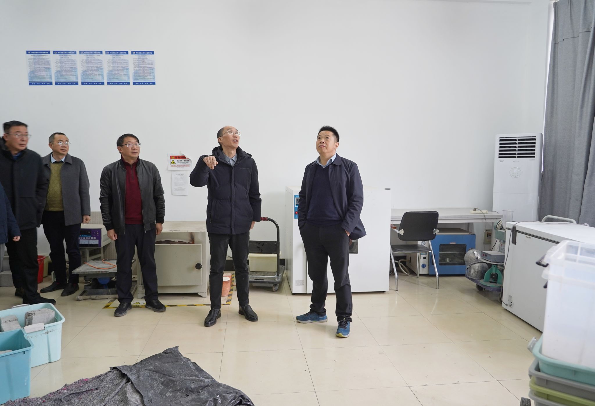 在土建學院實驗室,徐長節詳細檢查了儀器設備及消防安全等情況,強調假期要高度重視實驗室管理,落實責任,保障實驗室安全。