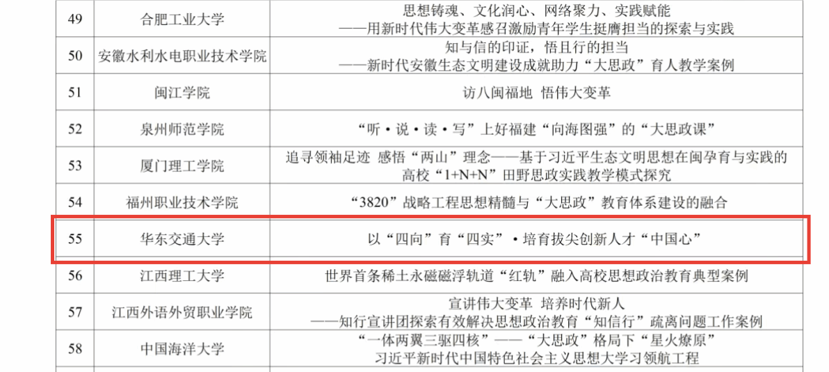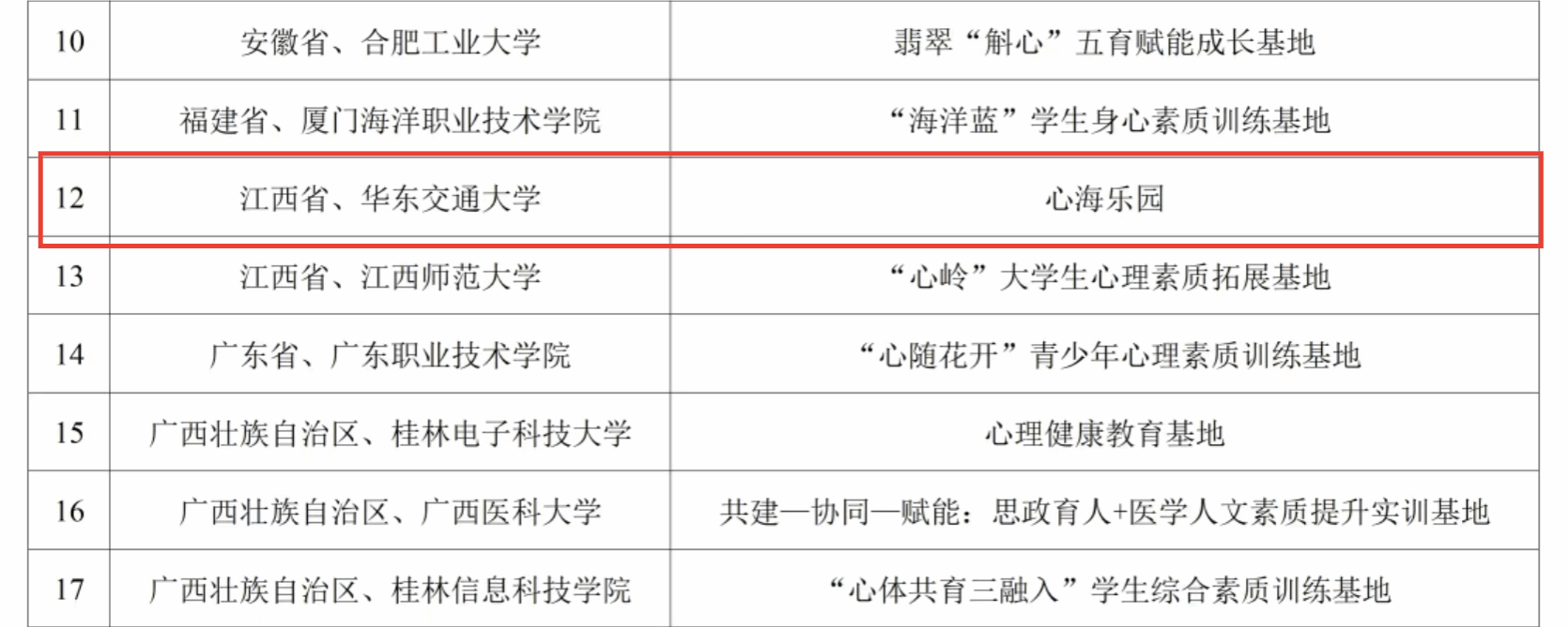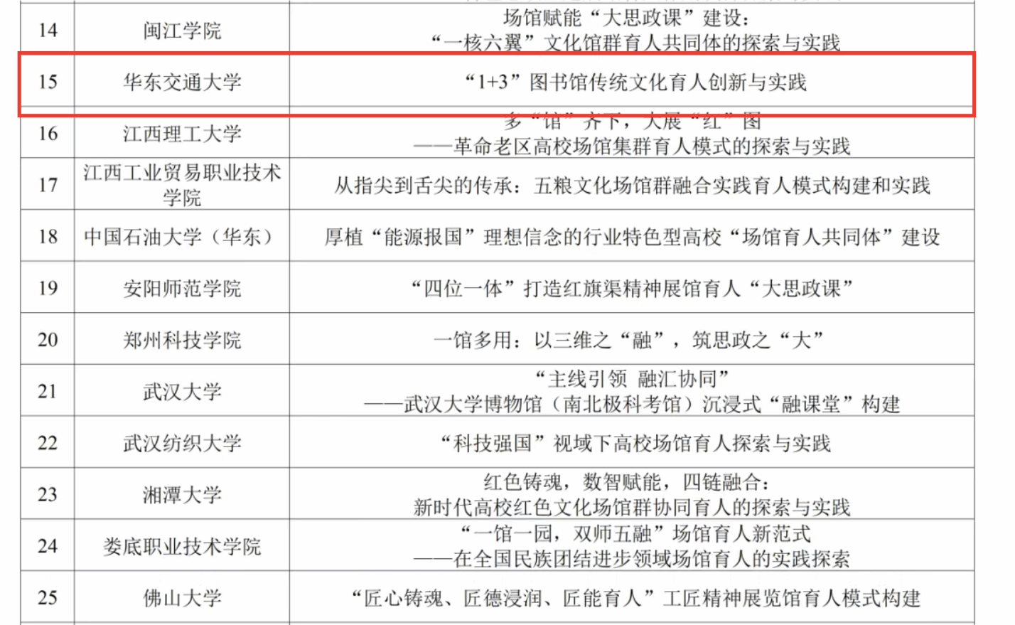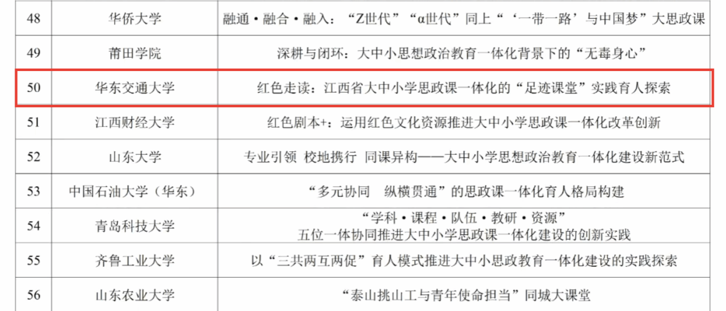 近日,教育部公示了2025年度高校思想政治工作質量提升綜合改革與精品建設項目遴選結果。我校共4個項目入選,其中,“‘1+3’圖書館傳統文化育人創新與實踐”項目入選2025年度高校場館育人作用開發名單、“以‘四向’育‘四實’培育拔尖創新人才‘中國心’”入選2025年度新時代偉大變革融入高校思想政治教育典型案例、“紅色走讀:江西省大中小學思政課一體化的‘足跡課堂’實踐育人探索”入選2025年度大中小學思想政治教育一體化建設工作典型案例、“心海樂園”入選2025年度學生綜合素質訓練基地,入選總數并列全省第一。