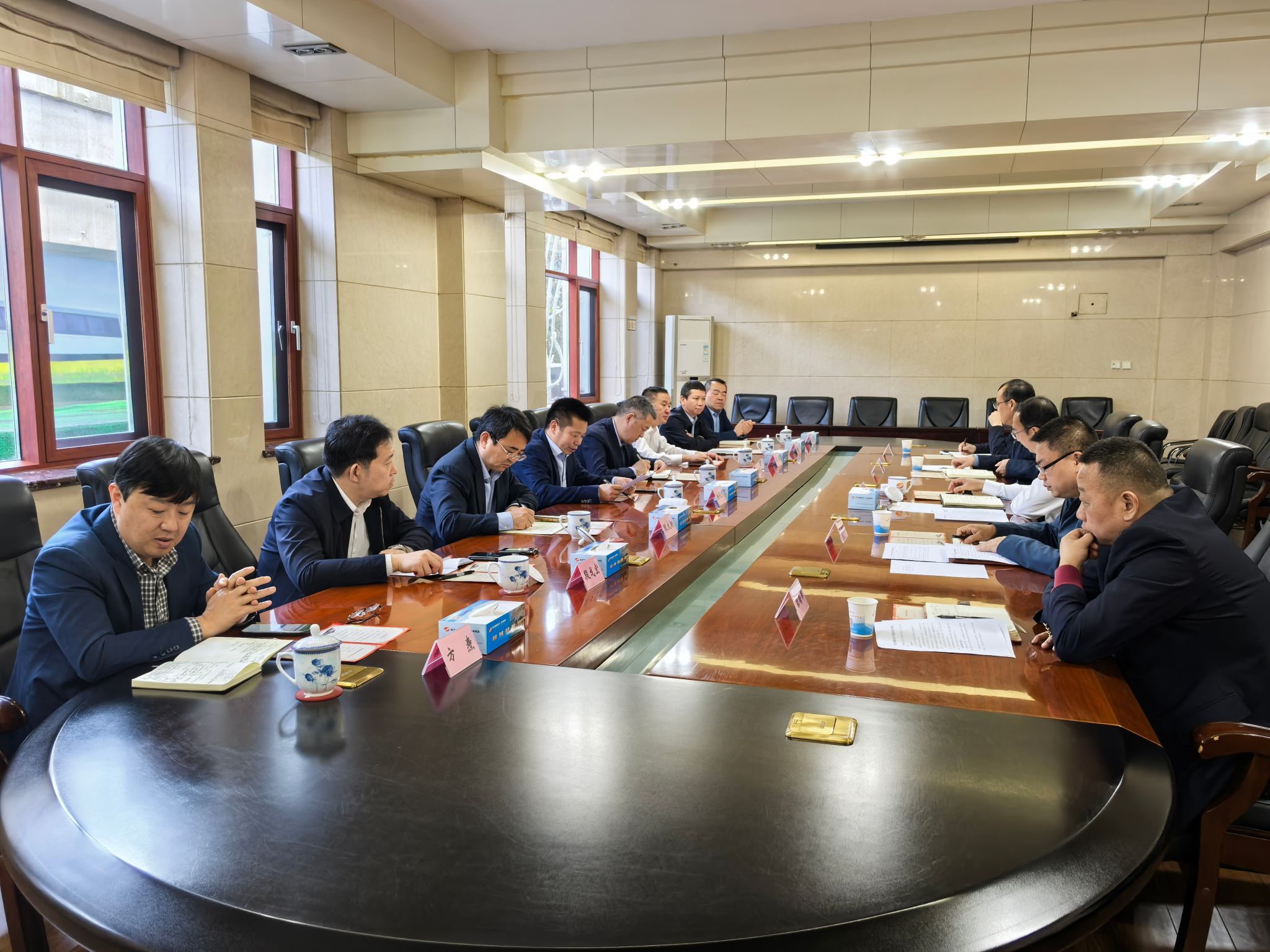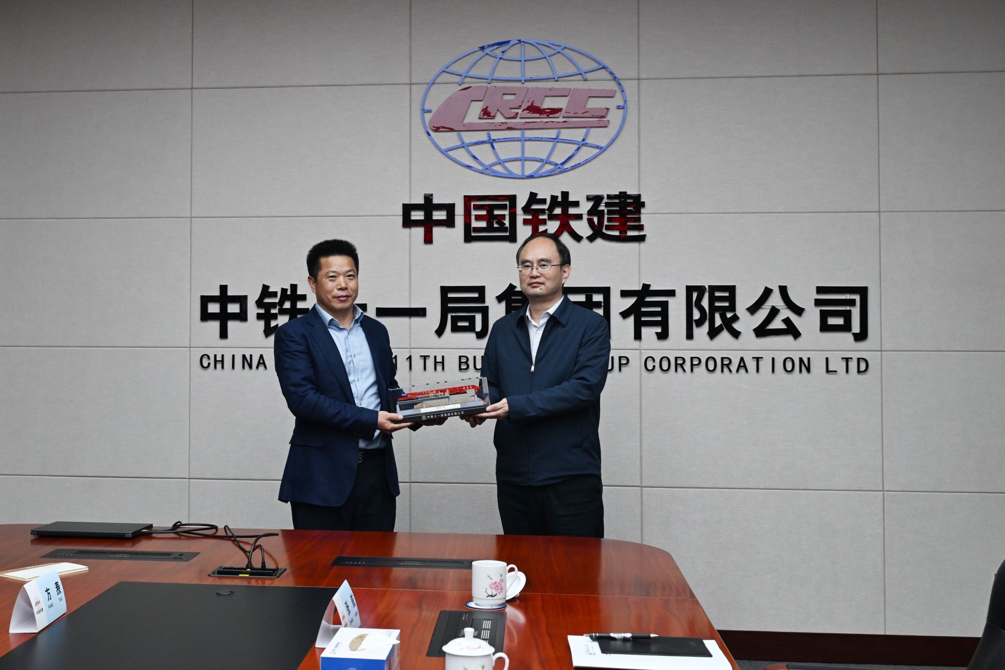 在十一局,黨委副書記吳剛陪同徐長節一行參觀了企業展覽館,并向學校贈送了“‘昆侖號’千噸級高鐵箱梁運架一體機模型”。座談會上,吳剛從十一局的歷史沿革、人才結構、經營業績等方面詳細介紹了企業的發展情況。他對學校多年來對十一局事業發展的支持表示感謝,期待校企雙方能在人才培養、產學研合作、特殊崗位定制化培養、教師現場學習和交流等方面進一步深化合作。徐長節表示,學校目前處在轉型期,通過和企業的交流為我們的轉型提供了思路,學校和十一局將在人才、科技、市場等多方面進行資源互補,今后的合作一定有更廣泛的空間。此次交流,雙方還就建立校企戰略合作伙伴關系達成了共識。