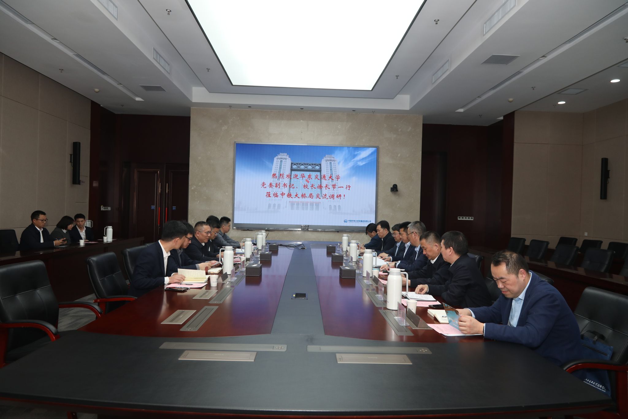 在大橋局,黨委副書記、總經理毛偉琦接待了徐長節一行,他從大橋局的歷史沿革、技術優勢、業務板塊、人才培養模式以及典型項目等方面介紹了大橋局的有關情況和人才引進的標準。他希望以校企合作為契機,充分發揮學校的人才優勢和大橋局在橋梁領域的行業優勢,實現雙方的資源共享和事業共同發展。同時希望學校能在企業宣傳、學術交流、學生輸送、基金申報等方面繼續給予支持。徐長節表示,學校和大橋局有著良好的合作基礎,今后在科技創新、人才培養等多方面還有廣闊的合作空間。希望大橋局能夠依托自身在橋梁研究、建設方面的經驗,幫助學校橋梁學科建設,也希望有更多優秀的畢業生到大橋局工作、成長。