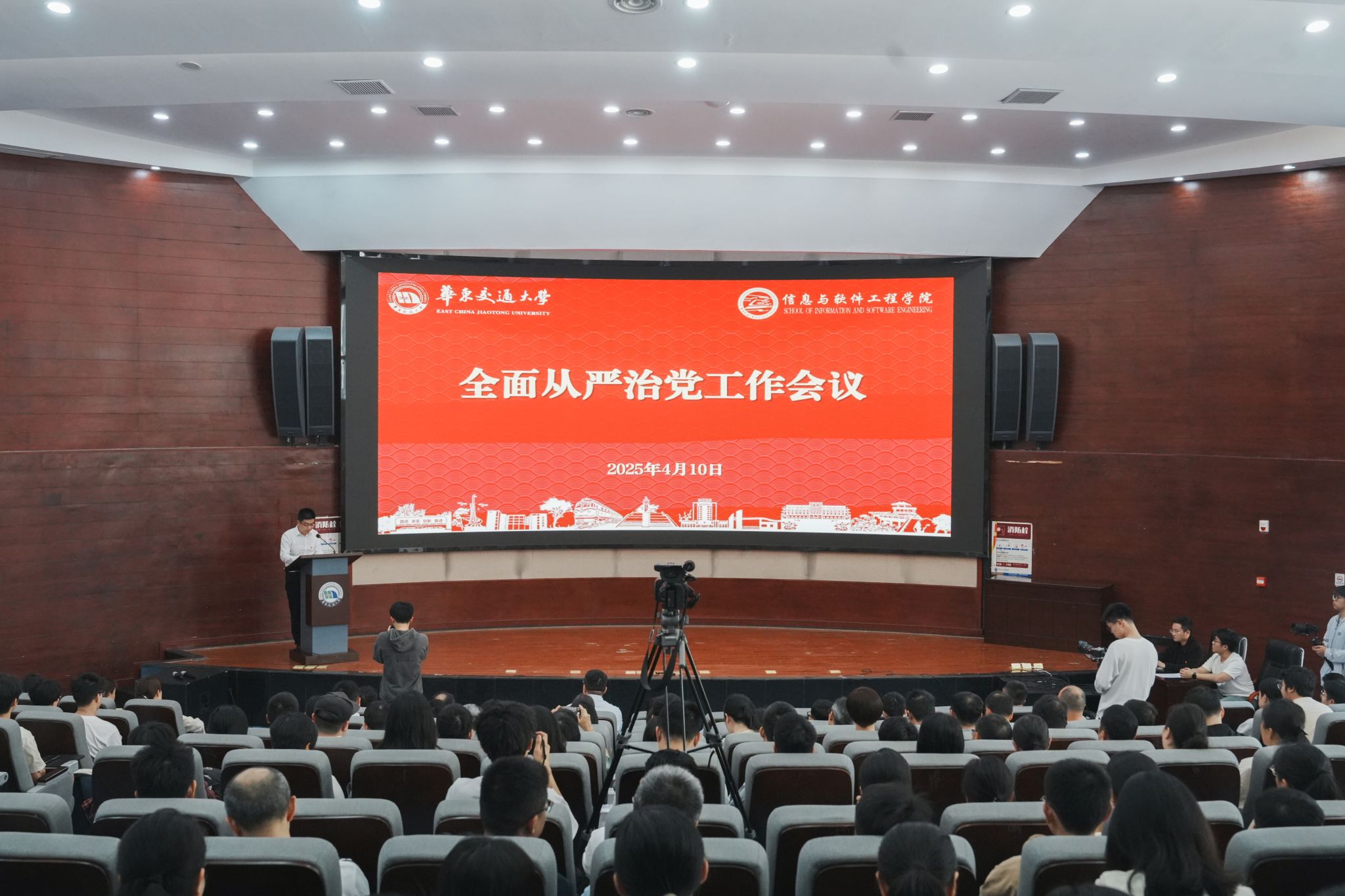 信工學院全體教職工、學生黨員代表參加會議。(宋雨凡 攝)