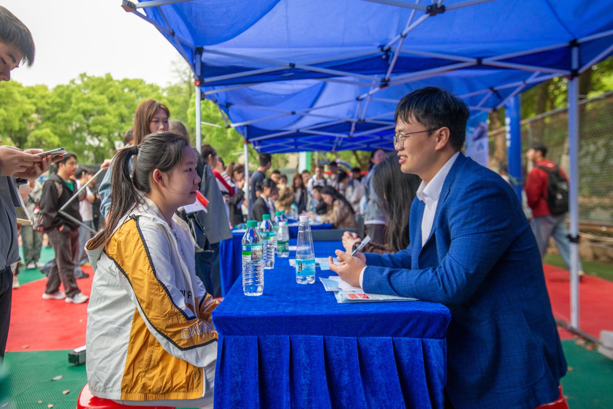 招就處、研工部負責人,各學院黨委副書記、就業干事參加雙選會。(交大融媒 攝)