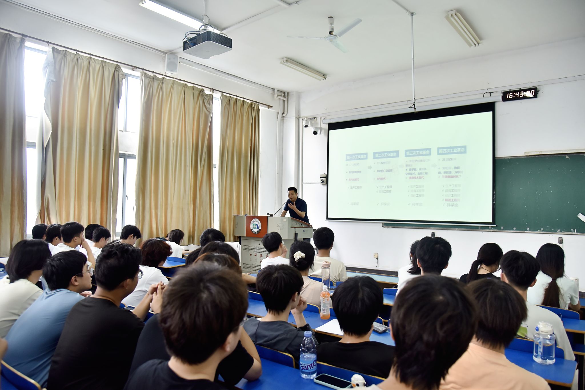 課堂上,徐長節以四次工業革命和美國的經濟發展為例闡述了科學技術在社會經濟發展中的支撐地位。他指出,人類社會正面臨著前所未有的變局,新興技術深刻改變著人們的生活方式。教育是培養人才的基礎,人才是推動科技進步的關鍵力量。高校作為培養人才和推動科技進步的主力軍,擔負著重要使命。