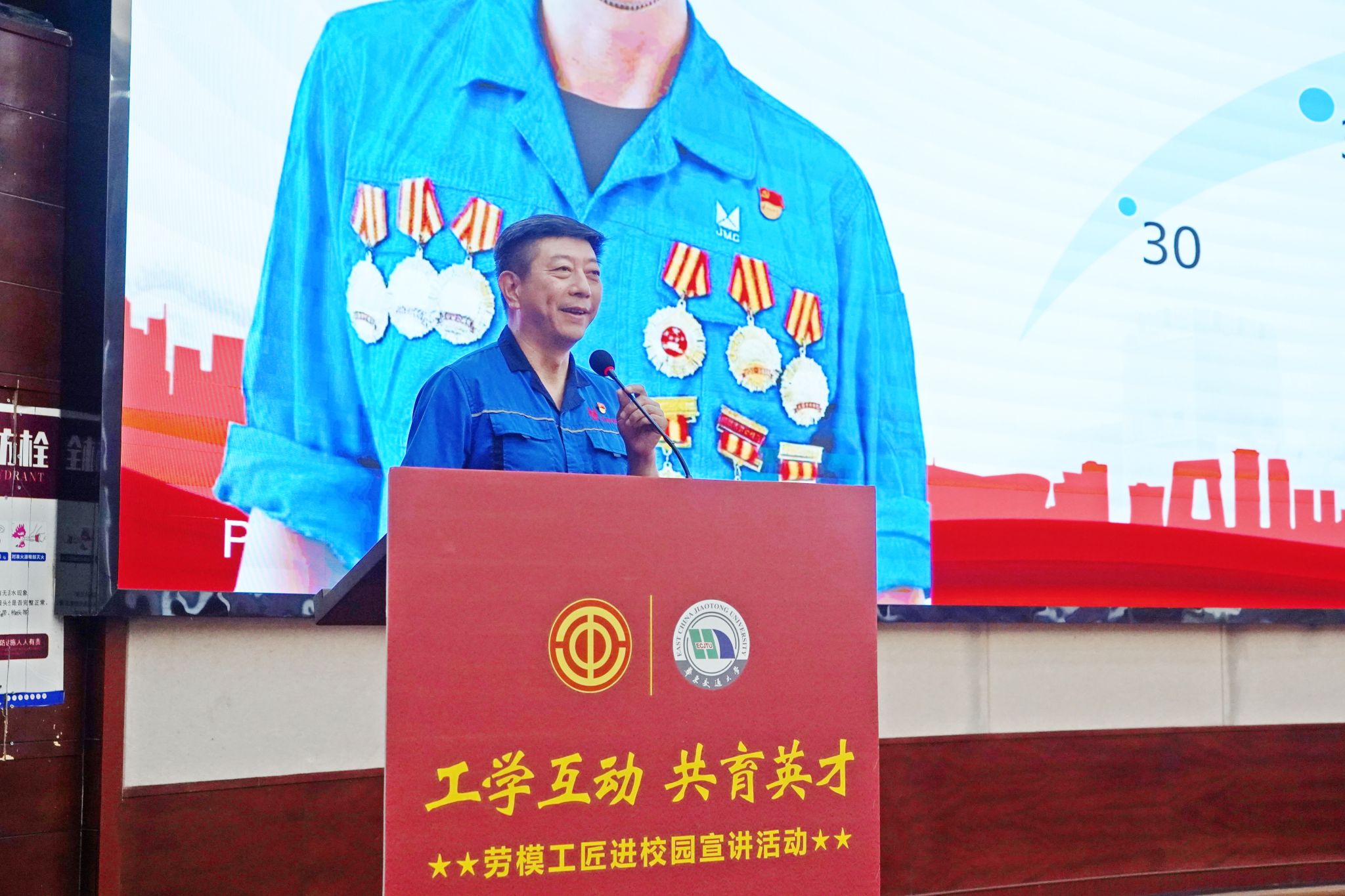 為熱烈慶祝中華全國總工會成立100周年,大力弘揚勞模精神、勞動精神、工匠精神,6月10日下午,“工學互動,共育英才”暨“勞模工匠進校園”宣講活動在北區圓形報告廳舉行。全國勞動模范、全國人大代表、江鈴集團鉗工特級技師劉輝走進校園,為師生帶來了一場震撼心靈的匠心傳承盛宴。省教育工會負責人出席活動。