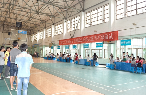 6月11日,2015年江西國際女子網球公開賽志愿者面試工作在南區風雨球館舉行。省體育局副巡視員古芳遠、省網球運動管理中心主任黃美青及體育學院負責人蒞臨志愿者面試現場。我校共有284人報名,將錄取120人。