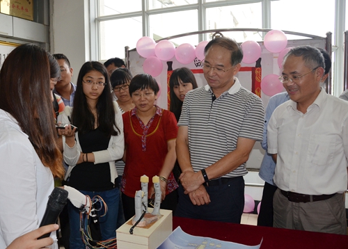 畢業設計(論文)是大學生在校學習的最后一個階段,是檢驗培養質量的一把標尺,是高校培養人才走向社會的最后一道關口。6月4日,機電工程學院舉辦畢業設計作品展。校黨委書記萬明來到作品展現場,興致勃勃地了解畢業設計作品的功能、作用和創新之處,并頻頻點頭表示肯定。副校長張堅、校紀委書記朱衛國一同觀摩作品展。