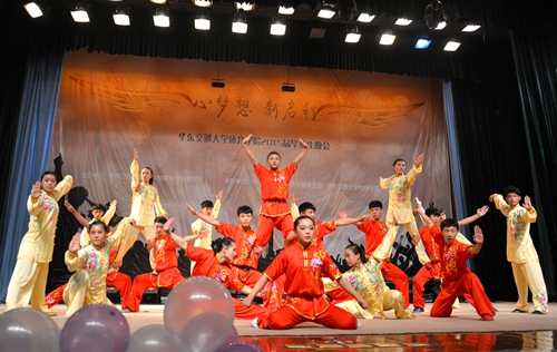 追夢英雄,開啟新程。一首《追夢英雄》以渾厚的嗓音傳播在禮堂,觀眾獻上熱烈的掌聲,全場的氣氛瞬間被引爆,畢業生們更是歡呼驚叫釋放畢業的激情;青春四射,真情漢子,體育學院健美操演員的每一個舞姿帶著一股剛性的力量,優柔而堅韌,“謝謝一路默默地陪著我,讓我擁有好故事可以說,看未來一步步來”《海闊天空》以高亢昂揚的詞調結合離別時的不舍、釋然流入每一個觀眾的耳中,淌入心中。