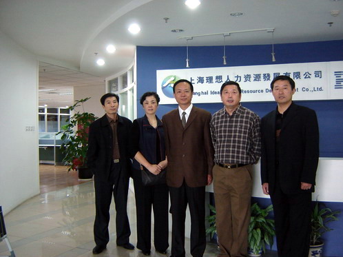 (高職學院領導、老師與上海理想人力資源發展有限公司總經理丁平在一起)