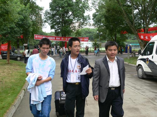 有了志愿者的陪同,新生能很快辦理完所有的入學手續,但是很多新生和家長都很想從老師口中得到一些關于學校、學院、專業等具體情況的介紹,為此人文學院06級的專職輔導員和助理輔導員也都坐陣迎新現場,隨時解答新生及家長的疑問。記者在現場也看到了06級專職輔導員師星老師忙碌的身影,新生家長一個接一個過來找她詢問,她總是面帶微笑的耐心地回答。由于新生剛到校,對一切都很陌生,所以學院另外還設立了助理輔導員,每個專業都有一位的助理輔導員,幫助新生解決在生活上、心理上遇到的一些困難。