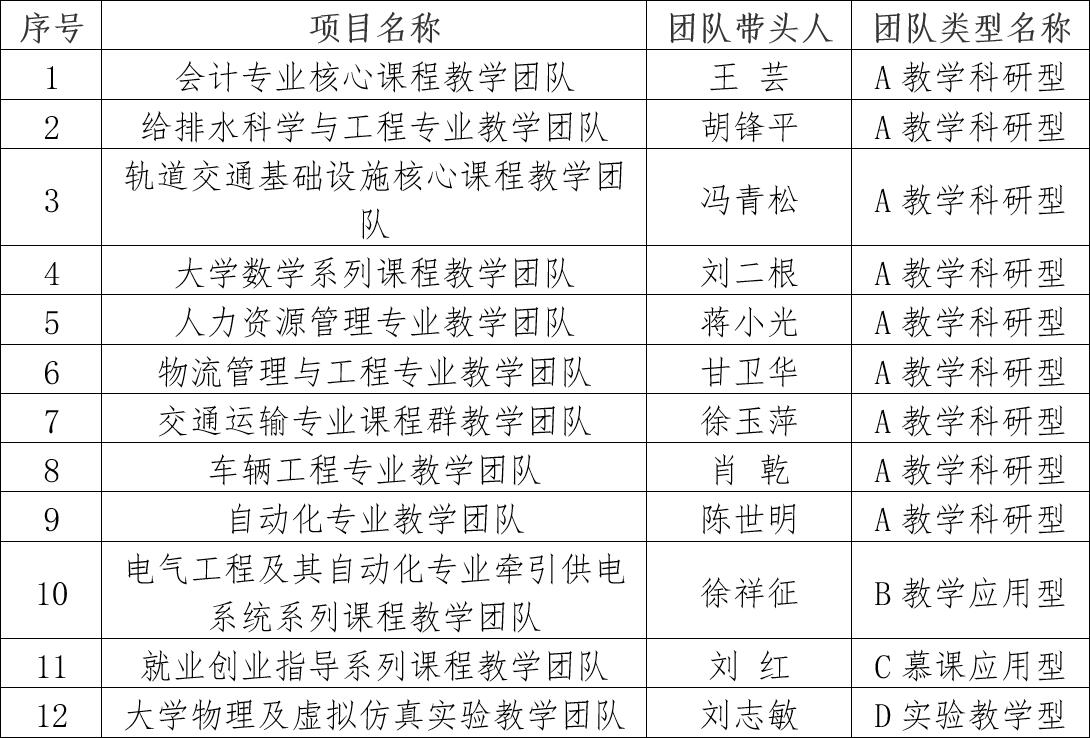日前,教育廳公布了首批江西省高水平本科教學團隊立項建設名單,我校12個教學團隊通過立項,其中A教學科研型9個,B教學應用型1個,C慕課應用型1個,D實驗教學型1個,立項總數位列全省高校并列第二(均來自于一流專業或一流課程團隊)。具體名單如下: