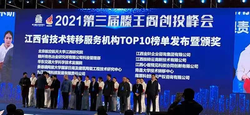 12月29日,由江西省人民政府指導,江西省科技廳、江西省金融監管局江西證監局、南昌市人民政府主辦,南昌高新區管委會、南昌市科技局、中科心客、梅花創投承辦的第三屆滕王閣創投峰會在南昌順利開幕,會上發布了《2021江西省技術轉移服務機構TOP10榜單》。我校入選“江西省技術轉移服務機構TOP10”,全省僅三所高校入選。