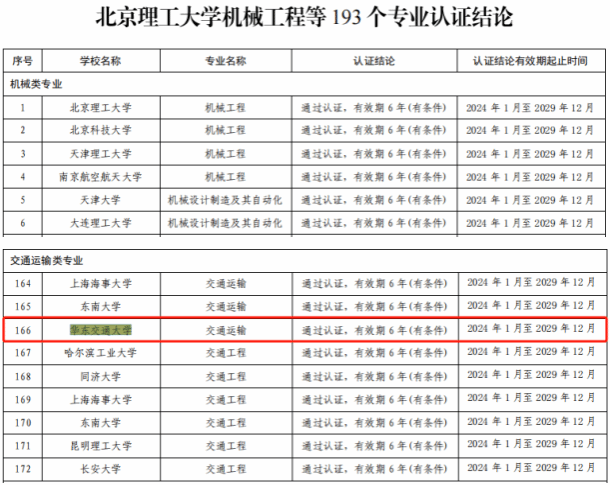 7月30日,中國工程教育專業認證協會發布《關于公布北京理工大學機械工程等193個專業認證結論的通知》,公布了2023年度全國工程教育專業認證的認證結論。我校交通運輸專業再次通過工程教育認證,認證有效期6年(2024年1月至2029年12月)。