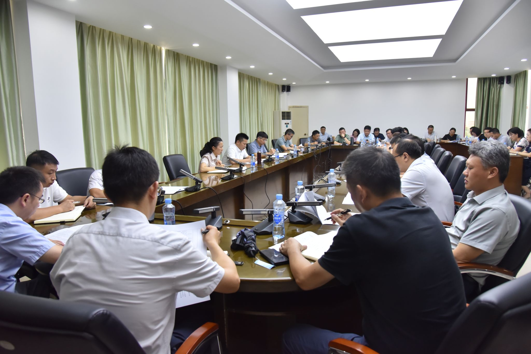 黨辦校辦、組織部、宣傳部、教工部、學(xué)工部、團委、雙創(chuàng)學(xué)院、武裝部、發(fā)規(guī)處、教務(wù)處、科發(fā)院、研究生院、招就處、資產(chǎn)處、計財處、外聯(lián)處、招標辦、網(wǎng)信中心、圖書館、后勤中心、華交產(chǎn)業(yè)集團、校醫(yī)院主要負責(zé)人,各學(xué)院院長參加會議。(陳君 攝)
