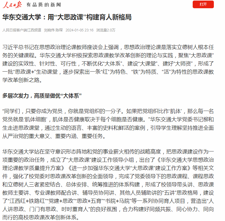 【人民日報】華東交通大學:用“大思政課”構建育人新格局
