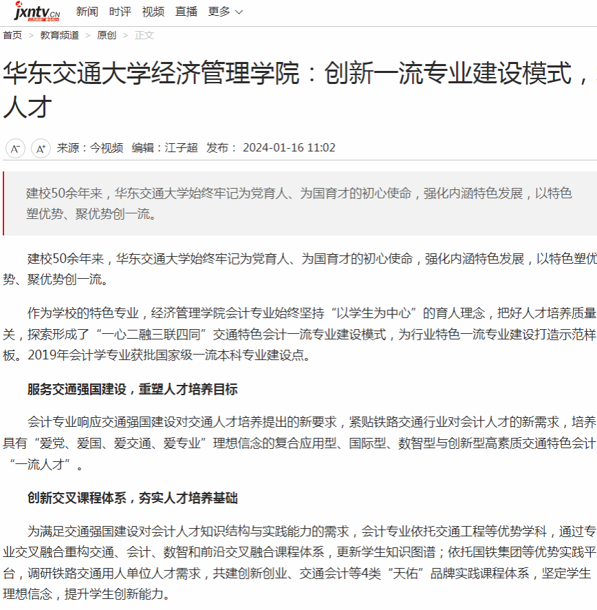 面向未來,華東交通大學會計專業將繼續站在時代潮流前列、站在攻堅克難前沿,在人才培養工作中更加積極作為,為社會輸送更多優秀的會計專業畢業生。