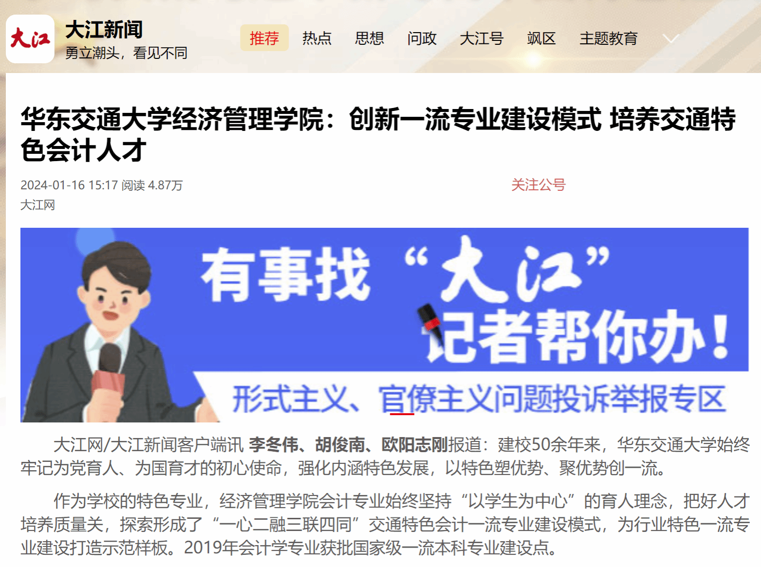 面向未來,華東交通大學會計專業(yè)將繼續(xù)站在時代潮流前列、站在攻堅克難前沿,在人才培養(yǎng)工作中更加積極作為,為社會輸送更多優(yōu)秀的會計專業(yè)畢業(yè)生。