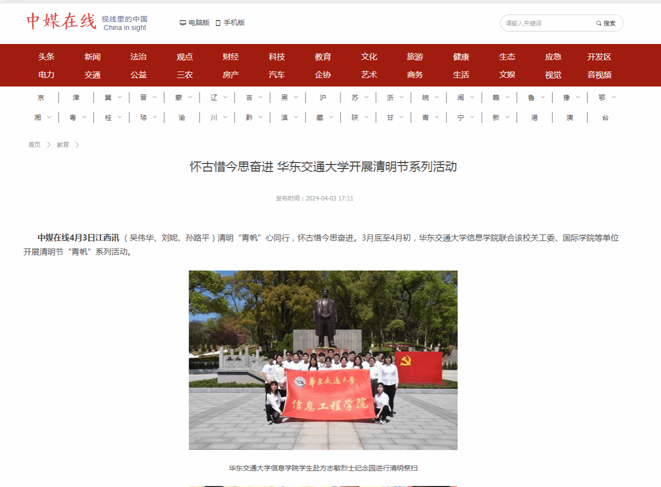清明“青帆”心同行,懷古惜今思奮進。3月底至4月初,華東交通大學信息學院聯合該校關工委、國際學院等單位開展清明節“青帆”系列活動。