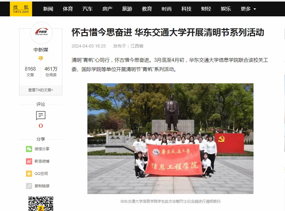 清明“青帆”心同行,懷古惜今思奮進。3月底至4月初,華東交通大學信息學院聯合該校關工委、國際學院等單位開展清明節“青帆”系列活動。