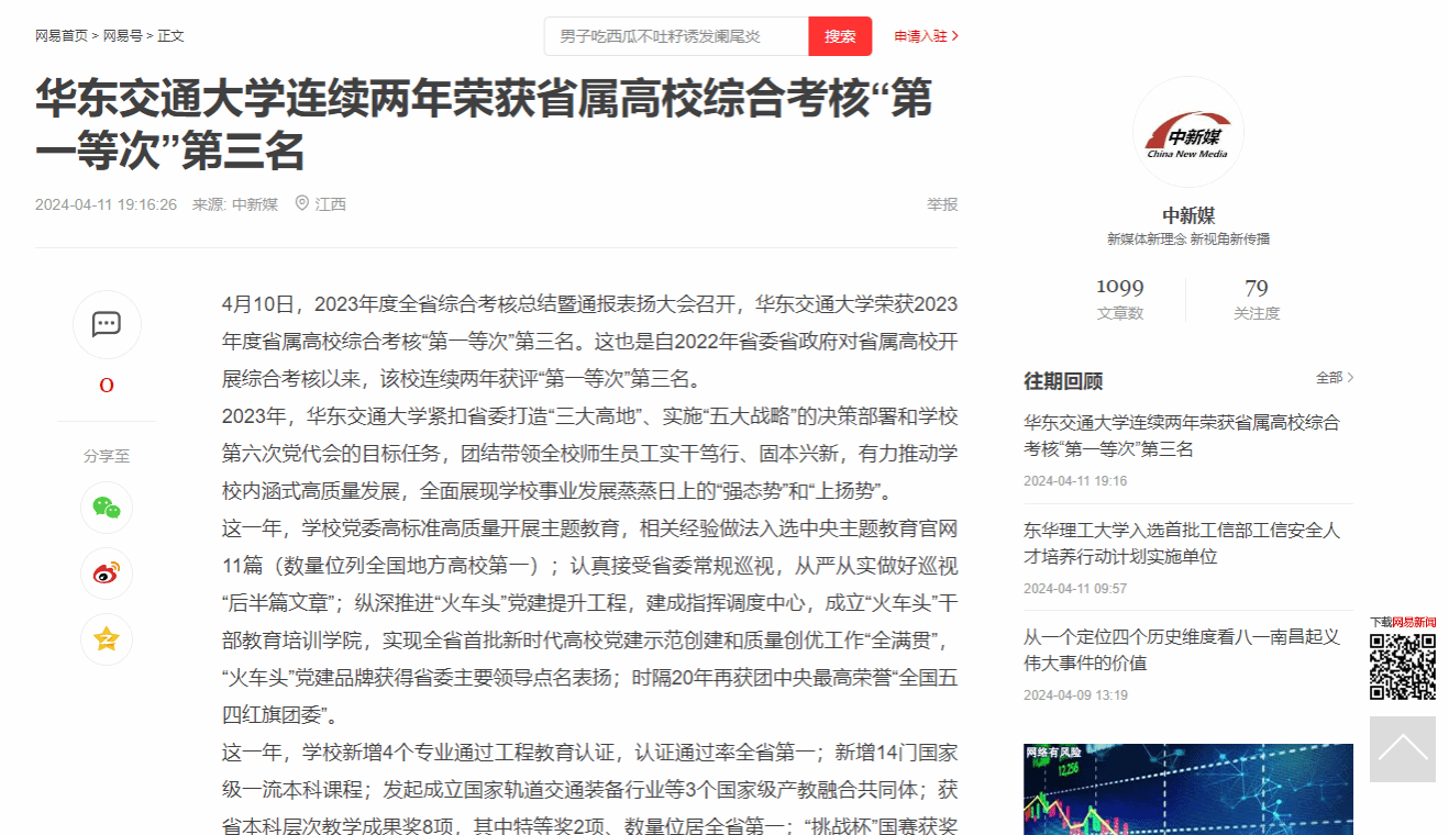 4月10日,2023年度全省綜合考核總結(jié)暨通報表揚大會召開,華東交通大學(xué)榮獲2023年度省屬高校綜合考核“第一等次”第三名。這也是自2022年省委省政府對省屬高校開展綜合考核以來,該校連續(xù)兩年獲評“第一等次”第三名。
