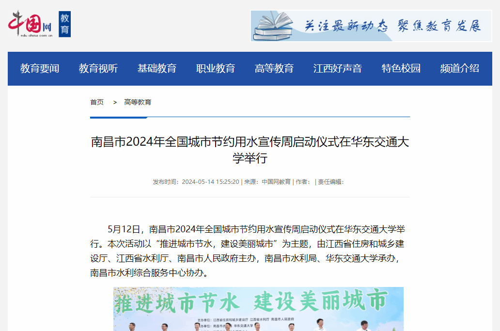 南昌市2024年全國城市節約用水宣傳周啟動儀式在華東交通大學舉行