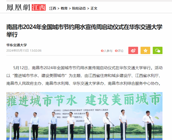 【鳳凰網江西】南昌市2024年全國城市節約用水宣傳周啟動儀式在華東交通大學舉行