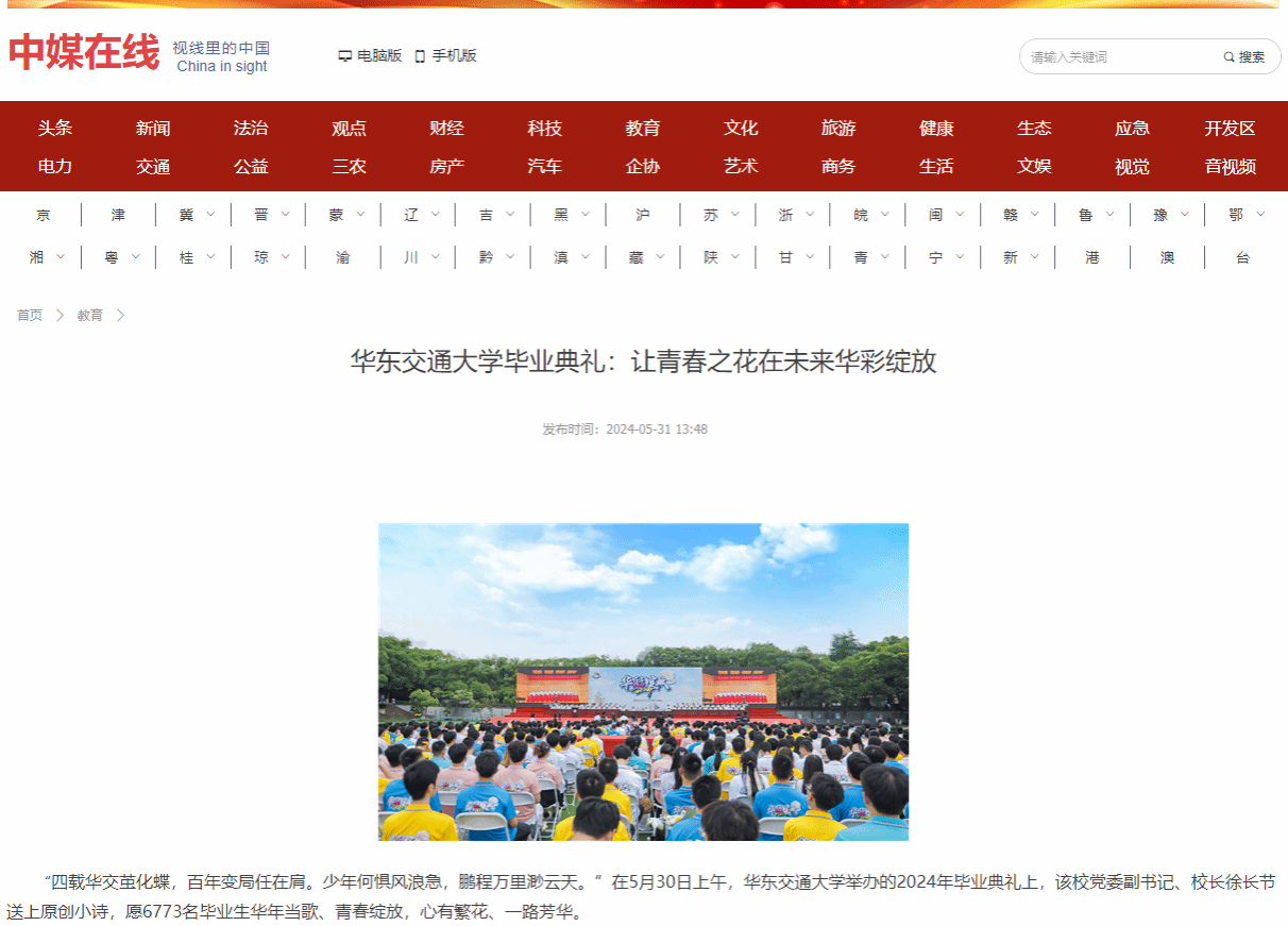 “四載華交繭化蝶,百年變局任在肩。少年何懼風浪急,鵬程萬里渺云天?!痹?月30日上午,華東交通大學舉辦的2024年畢業典禮上,該校黨委副書記、校長徐長節送上原創小詩,愿6773名畢業生華年當歌、青春綻放,心有繁花、一路芳華。