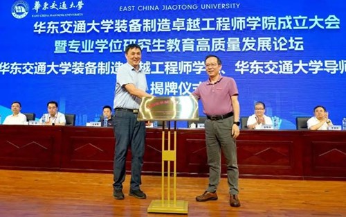 7月8日,華東交通大學舉行裝備制造卓越工程師學院成立大會暨專業學位研究生教育高質量發展論壇。江西省教育廳二級巡視員李偉和華東交通大學黨委書記柳和生為華東交通大學裝備制造卓越工程師學院揭牌。江西省教育廳高教處處長陳軍和華東交通大學黨委副書記、校長徐長節為華東交通大學導師學院揭牌。