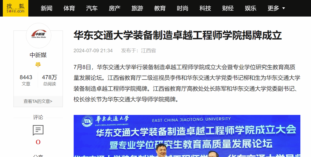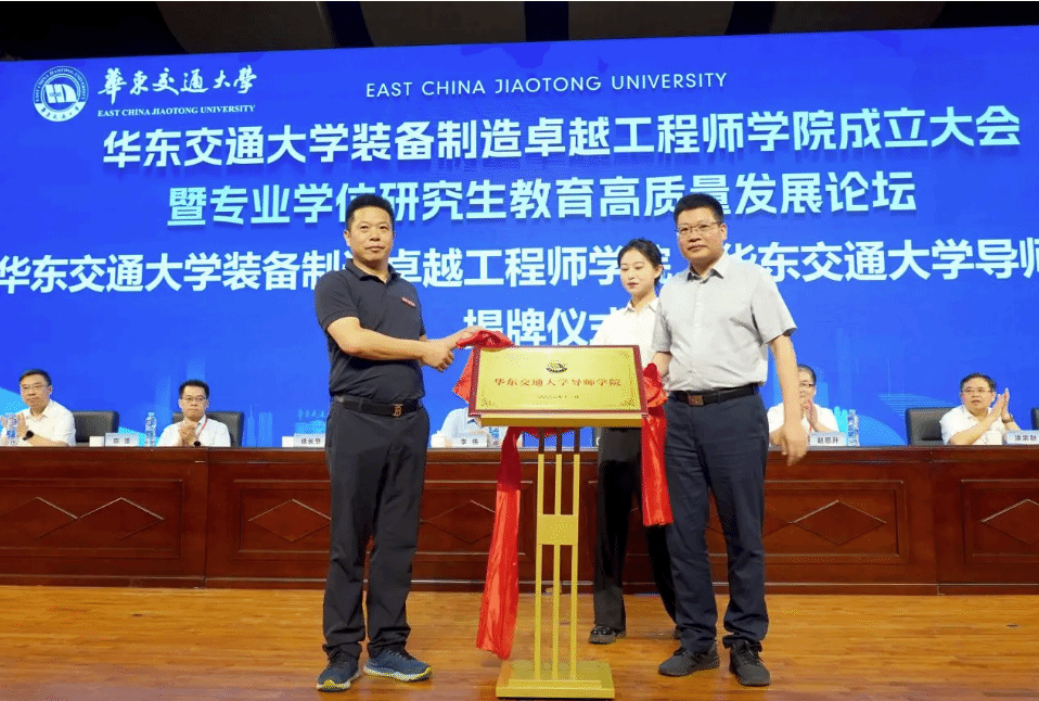 7月8日,華東交通大學舉行裝備制造卓越工程師學院成立大會暨專業學位研究生教育高質量發展論壇。江西省教育廳二級巡視員李偉和華東交通大學黨委書記柳和生為華東交通大學裝備制造卓越工程師學院揭牌。江西省教育廳高教處處長陳軍和華東交通大學黨委副書記、校長徐長節為華東交通大學導師學院揭牌。