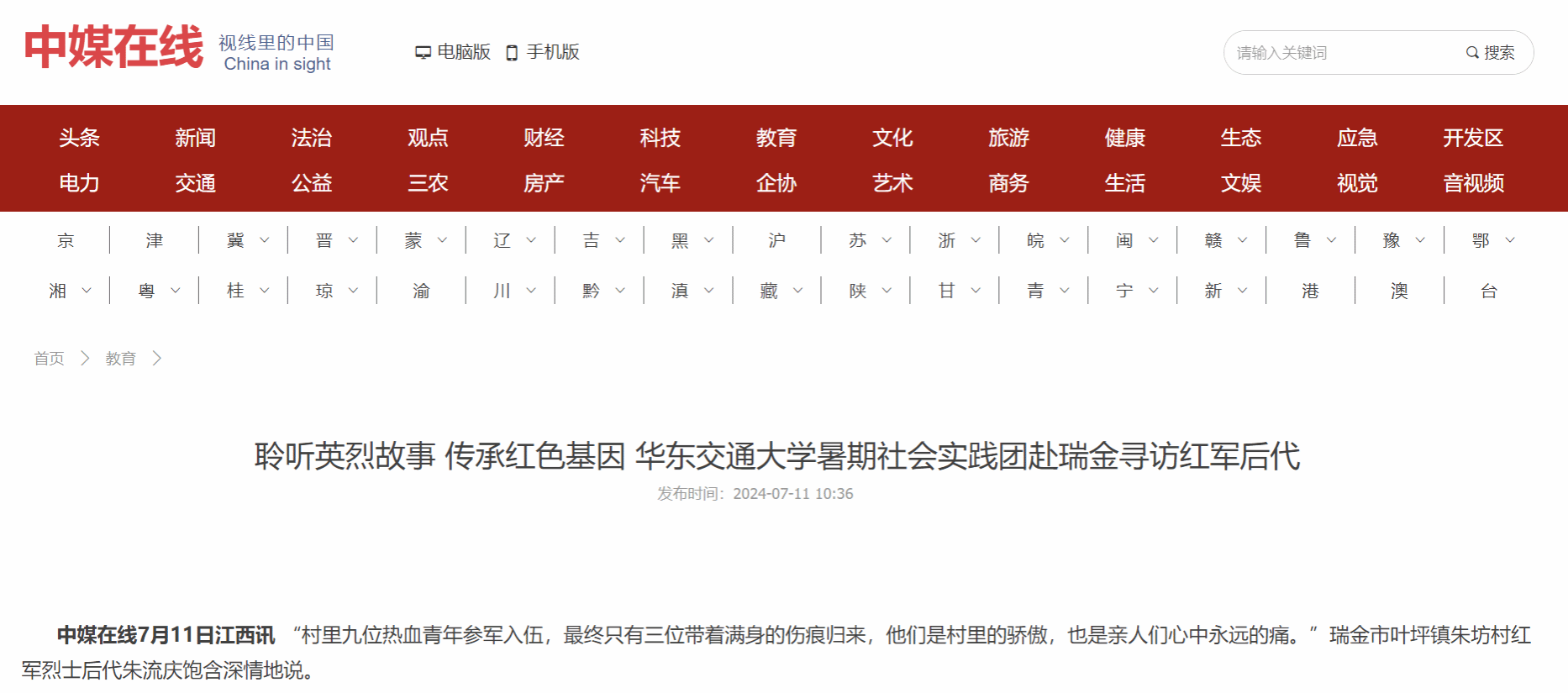 7月5日,華東交通大學世紀英才英才學校“火車頭”暑期社會實踐隊第二分隊來到長征出發地——江西瑞金開展“重走長征之路,感悟長征精神”的主題實踐活動。其間,實踐團來到瑞金市葉坪鎮朱坊村尋訪紅軍烈士后代朱發金、朱流慶,聽他們講述革命英烈故事、傳承紅色基因。
