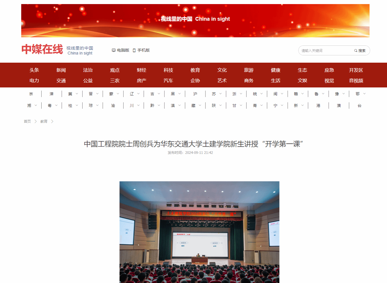 9月10日晚,中國工程院院士、南昌大學教授周創兵以“不負時代韶華,立志成長成才”為題為華東交通大學土建學院2024級新生講授“開學第一課”。