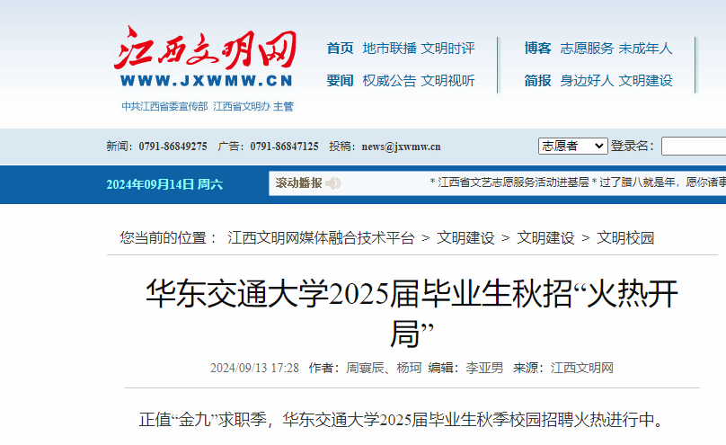 【江西文明網】華東交通大學2025屆畢業生秋招“火熱開局”