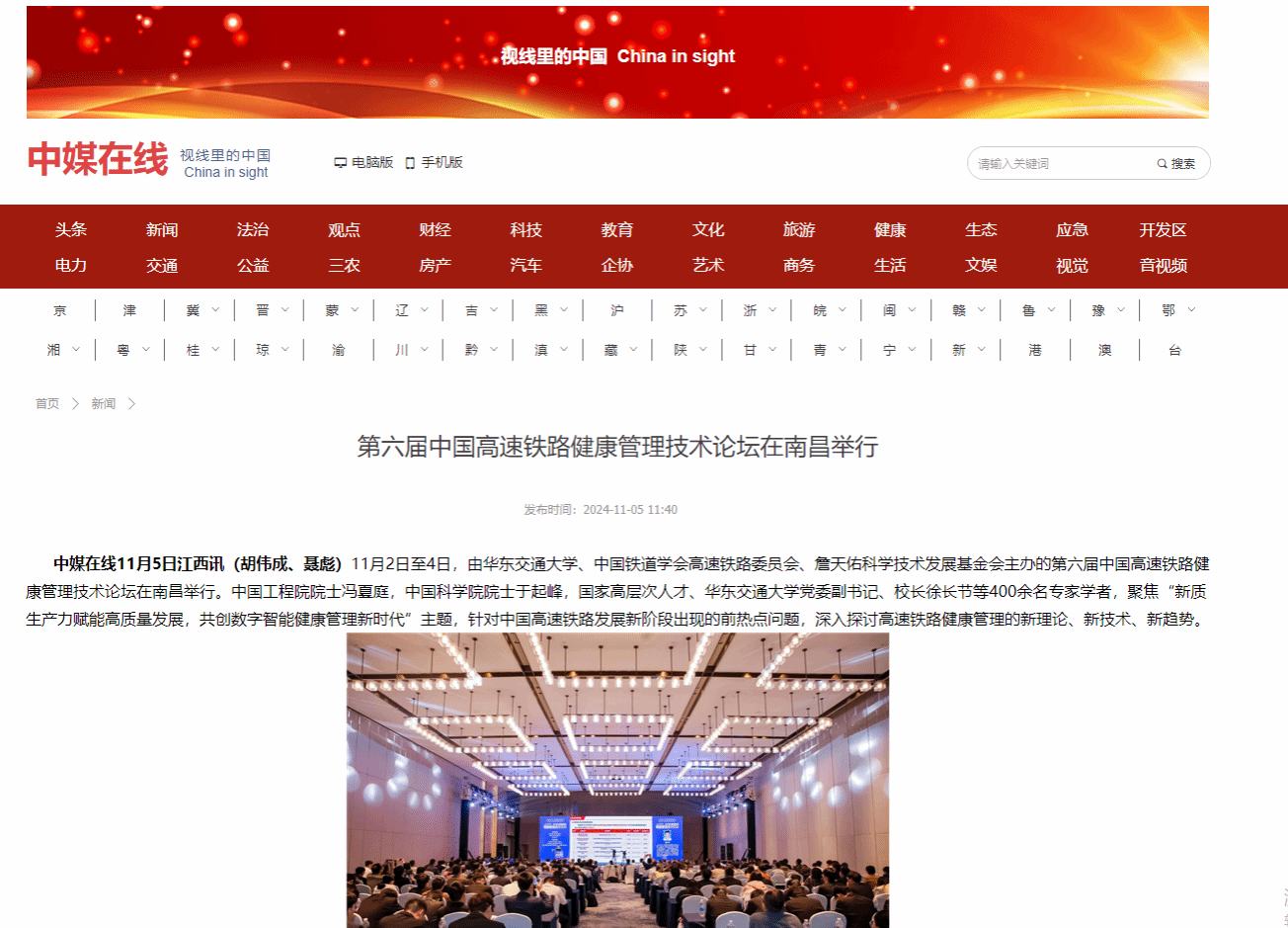 11月2日至4日,由華東交通大學、中國鐵道學會高速鐵路委員會、詹天佑科學技術發展基金會主辦的第六屆中國高速鐵路健康管理技術論壇在南昌舉行。中國工程院院士馮夏庭,中國科學院院士于起峰,國家高層次人才、華東交通大學黨委副書記、校長徐長節等400余名專家學者,聚焦“新質生產力賦能高質量發展,共創數字智能健康管理新時代”主題,針對中國高速鐵路發展新階段出現的前熱點問題,深入探討高速鐵路健康管理的新理論、新技術、新趨勢。