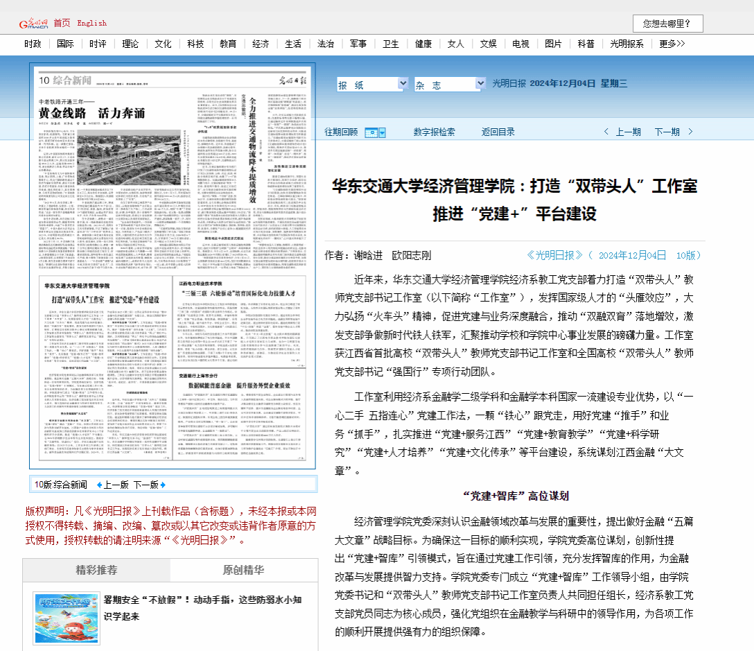 【光明日報(bào)】華東交通大學(xué)經(jīng)濟(jì)管理學(xué)院:打造“雙帶頭人”工作室 推進(jìn)“黨建+”平臺建設(shè)