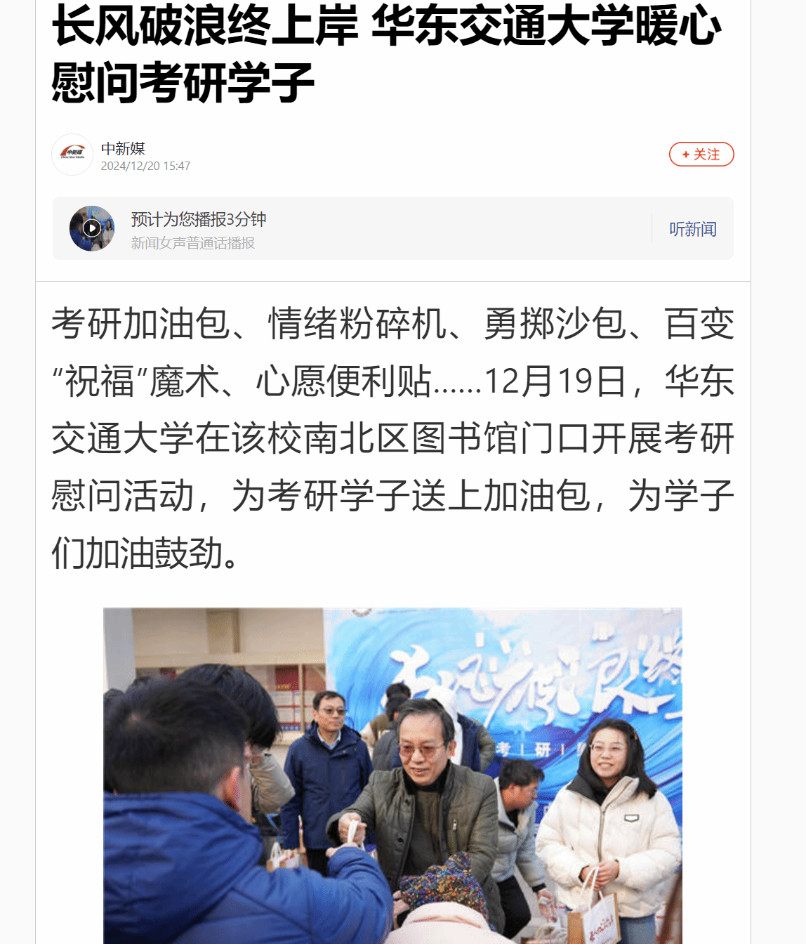 “報(bào)考了哪所大學(xué)?”“預(yù)祝考研成功”該校黨委書記柳和生,黨委副書記、校長徐長節(jié),黨委委員、副校長歐陽志剛來到考研慰問現(xiàn)場,一邊送上加油包,一邊與考研學(xué)子們親切交流,希望他們輕松應(yīng)考,祝福他們金榜題名,鐵定上岸。