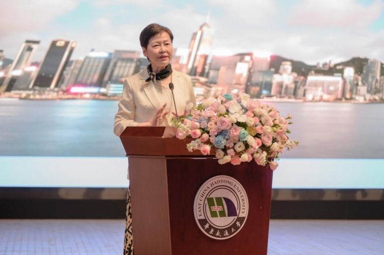 林鄭月娥做客華東交通大學(xué)孔目湖講壇。