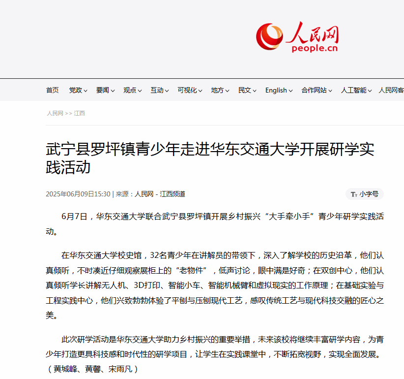 此次研學活動是華東交通大學助力鄉村振興的重要舉措,未來該校將繼續豐富研學內容,為青少年打造更具科技感和時代性的研學項目,讓學生在實踐課堂中,不斷拓寬視野,實現全面發展。