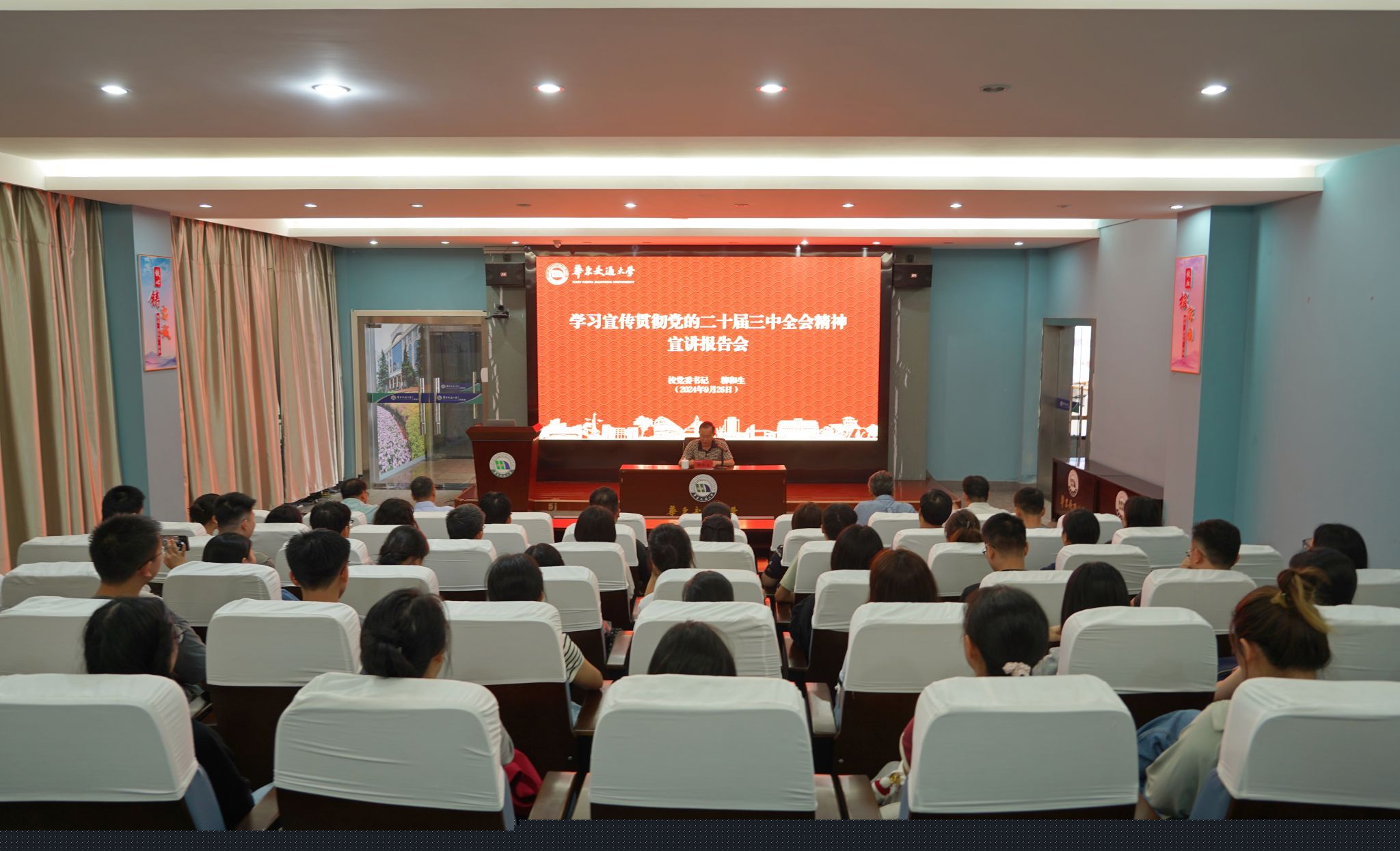 9月26日,校黨委書記柳和生為馬克思主義學院師生、黨辦校辦黨支部全體黨員、校農工黨支部委員會全體成員宣講黨的二十屆三中全會精神。
