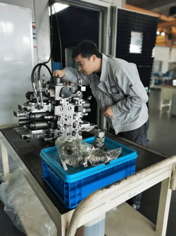 勇擔使命,服務科技產業。圍繞液壓基礎件長期以來的“卡脖子”難題,丁孺琦夯實“火車軌”,以科研和應用雙軌并行、立志破局。恰逢全球知名、國內領先的液壓元件龍頭企業—江蘇恒立核心產品正大規模推廣至國內外市場,但是產品的燃油效率、操控特性急需進一步提升。丁孺琦前期攻克的液壓系統高效供需匹配技術與企業產品需求不謀而合,連續開發出多種規格的負載口獨立控制型電液多路閥新產品,并裝機至全球挖掘機銷冠三一、山河智能等知名企業。新產品的裝機性能時刻牽動著產業鏈上下游企業的心,直接決定該產品的市場應用前景。為此,丁孺琦帶領研究生進駐調試現場,經歷了40度無遮擋高溫暴曬、零下嚴寒冰凍以及疫情影響,團隊成員甚至多次出現中暑等情況,但是仍然在1年內完成了105噸級旋挖鉆機、20噸/37噸級挖掘機等主流工程機械機型調試,助力江蘇恒立產品打破美、歐、日企業的長期壟斷,由進口替代到走向全球。相關技術還拓展應用至江西鑫通隧礦掘進裝備,促進了江西省裝備制造重點產業鏈發展。由此,相關產業應用支撐其獲浙江省科技進步獎一等獎、中國機械工業科學技術獎一等獎、江西省技術發明獎一等獎等5項省部級科技獎勵。