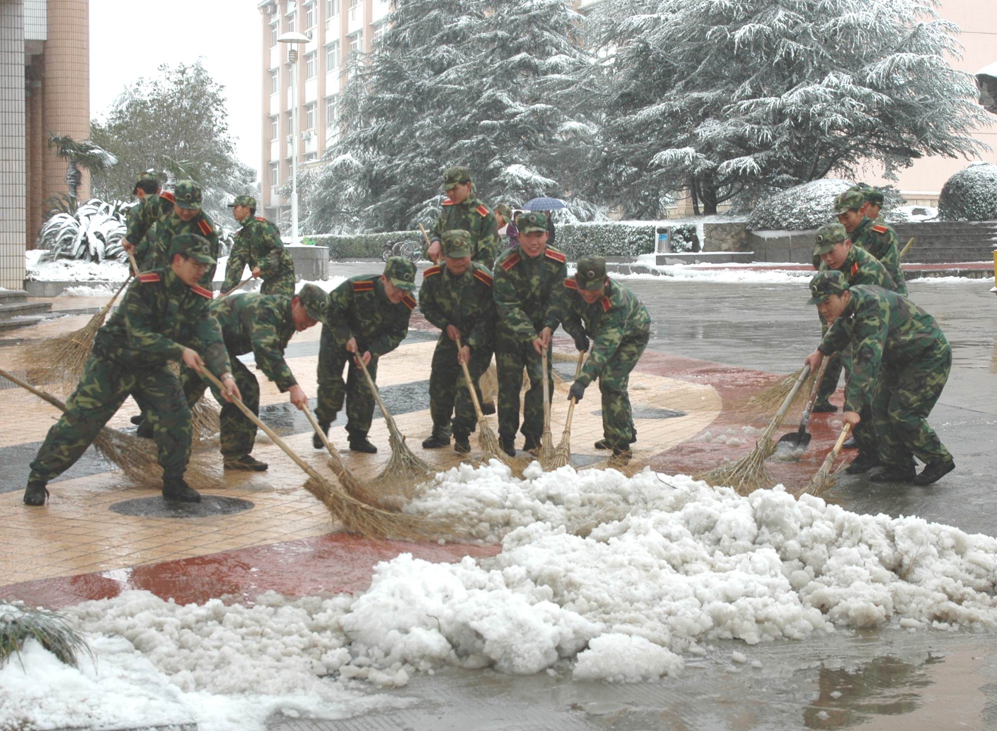 3月13日,又一場春雪悄悄降臨,整個校園一片潔白。為了方便師生行走,我校國防生早晨6:50就在校園各條道路上清掃積雪。到發(fā)稿時,他們還在忙碌。有個國防生說,他們的鞋子全濕透了,但一點都不覺得冷。他們臉上是...